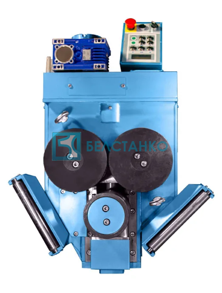 - Гибка осуществляется двумя ведущими роликами, с неподвижными осями, и нажимным с возможностью поступательного перемещения от электропривода.